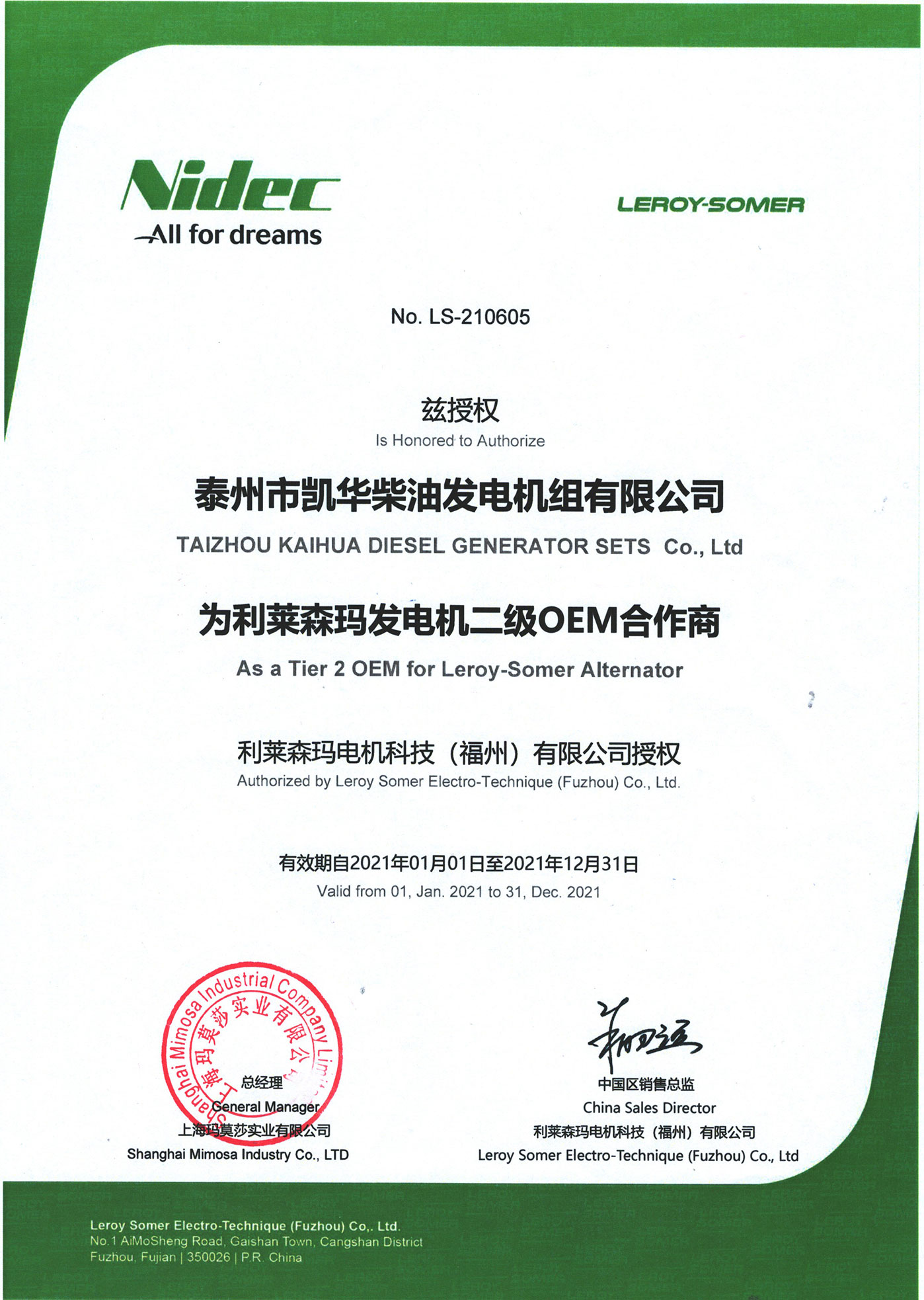泰州市凱華柴油發(fā)電機(jī)組有限公司創(chuàng)建于2003年,是一家集柴油發(fā)電機(jī)組的研發(fā)、生產(chǎn)、銷售為一體的高新技術(shù)民營企業(yè),公司目前注冊資本金11800萬元人民幣,生產(chǎn)基地占地六十畝,現(xiàn)有各類高素質(zhì)員工一百多名,專業(yè)技術(shù)人員達(dá)46人,其中高級(jí)技術(shù)人員16人,年銷售額近6億元。公司主營產(chǎn)品:3~3000KW陸用柴油發(fā)電機(jī)組,15~600KW移動(dòng)拖車電站,12~1000KW船用應(yīng)急柴油發(fā)電機(jī)組,各種靜音型、中高壓、多機(jī)并聯(lián)、燃?xì)獾忍胤N機(jī)組以及進(jìn)口系列柴油發(fā)電機(jī)組,可滿足不同客戶的不同電力需求,還可滿足用戶不同電壓、不同頻率的要求。